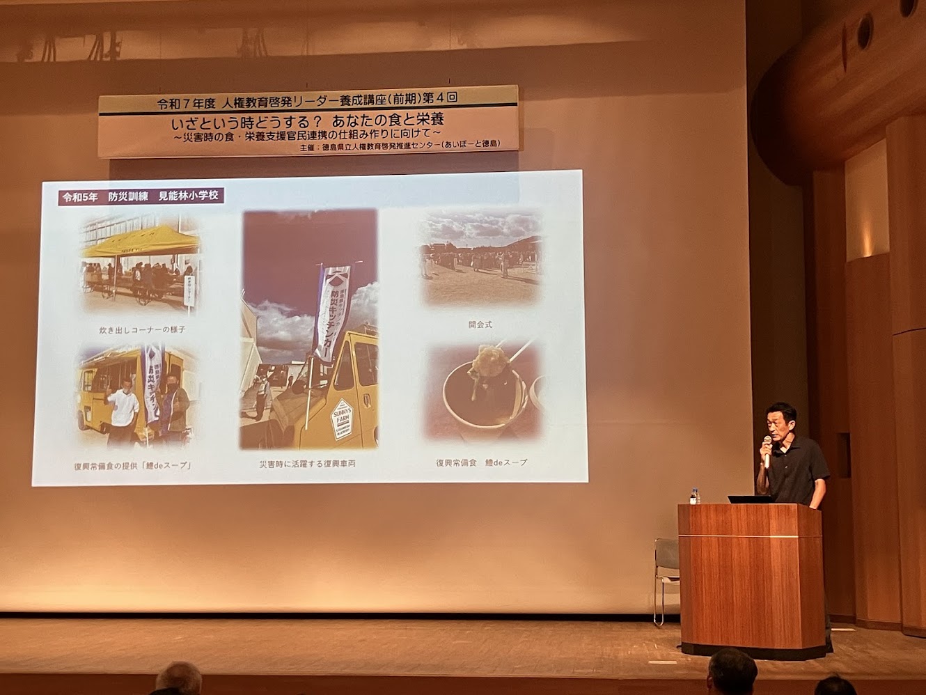 2025年9月12日徳島県立人権教育啓発推進センター主催「人権教育啓発リーダー養成講座」に当財団も登壇し、食の防災をテーマに講演を実施致しました。